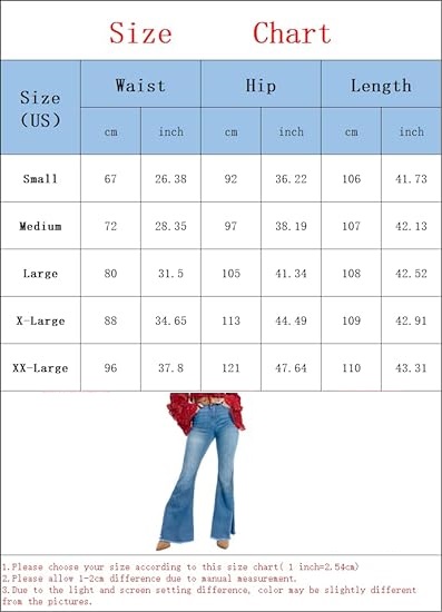 • Versatile and stylish: These Women's High Waisted Bell Bottom Jeans are not only comfortable and trendy but also incredibly versatile. They can be easily dressed up or down, making them suitable for a variety of occasions. Pair them with a tucked-in blouse and heels for a chic and sophisticated look, or dress them down with a graphic tee and sneakers for a casual and relaxed outfit.